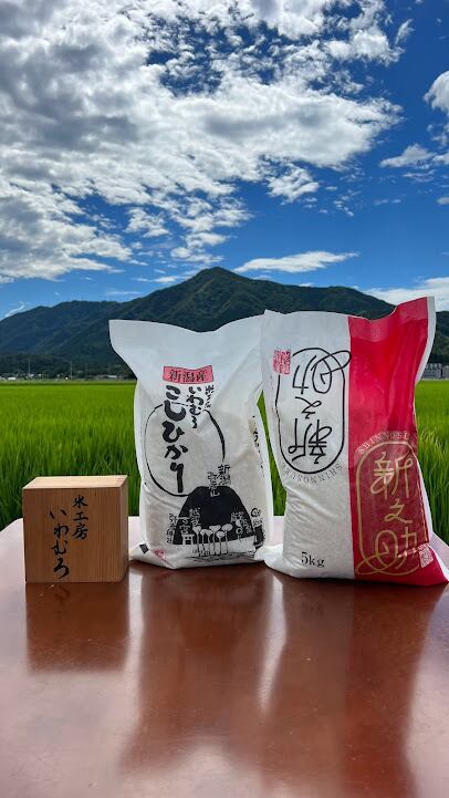 新潟県産コシヒカリ(白米)5kg袋と新潟県産新之助(白米)5kg袋を1袋ずつ合計10kgのセットです。